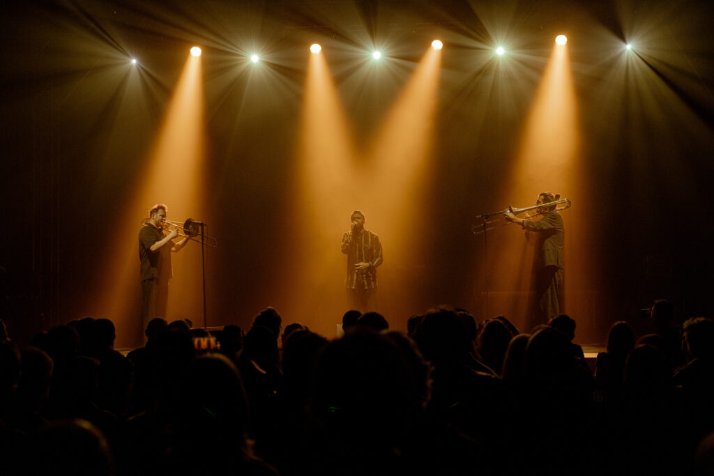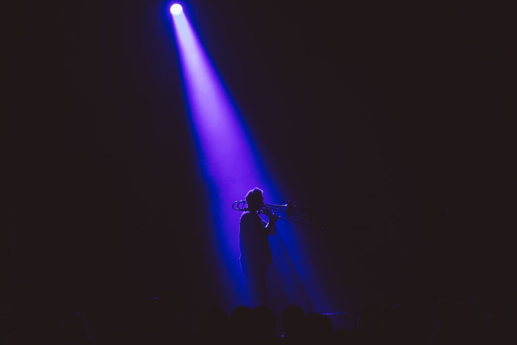 Egyptian poet, composer, and singer Abdullah Miniawy lit up the stage alongside two trombonists: Jules Boittin and Robinson Khoury with a performance of lyrical force and raw emotion. He presented his new album Peacock أَحْلَامُ الطَّاوُوسِ .