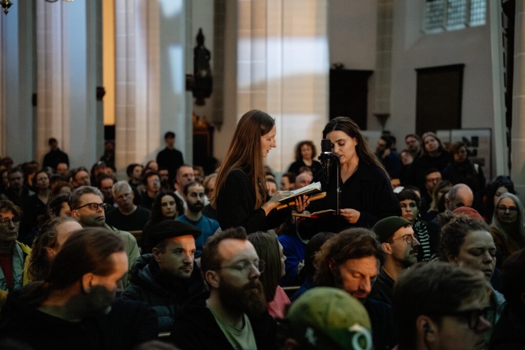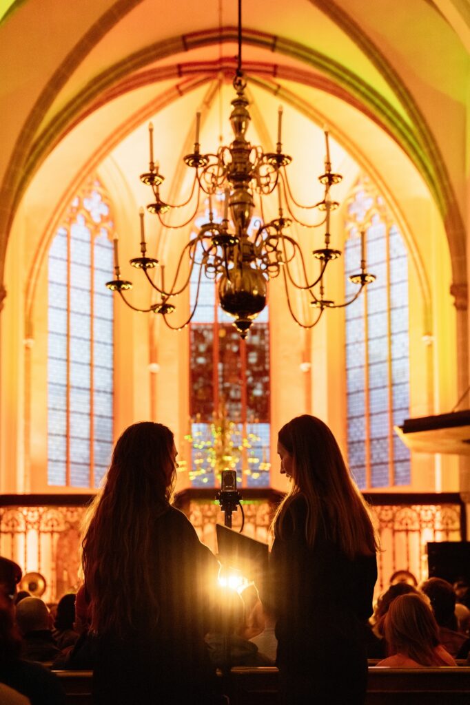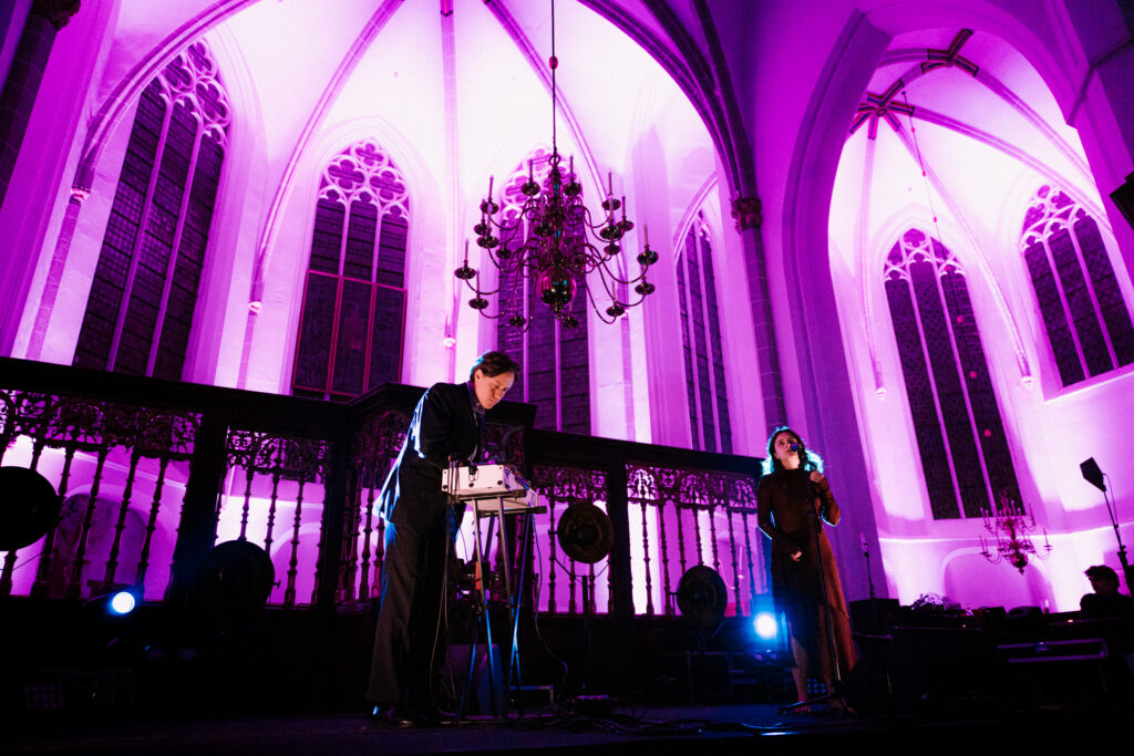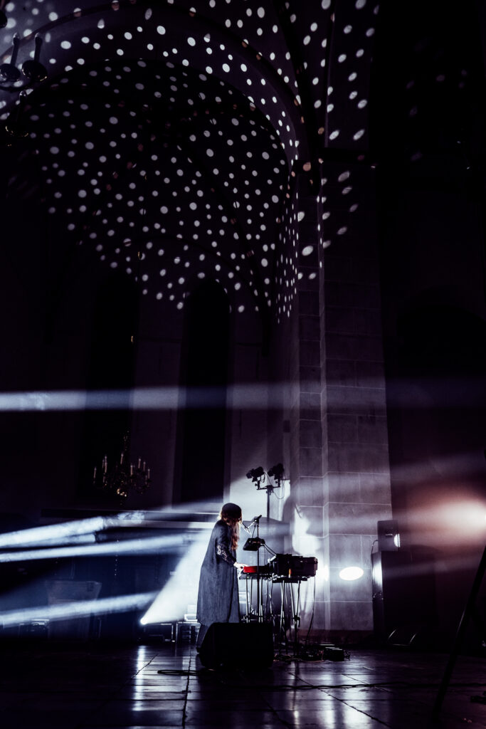 Гільдеґарда, a Ukrainian reworking of Hildegard von Bingen’s music by Heinali and Andriana-Yaroslava Saienko, captivated the audience. Andriana’s voice floated and reverberated through the church, while Heinali’s modular system added layers of deep, resonant textures, making the space itself seem alive with music.