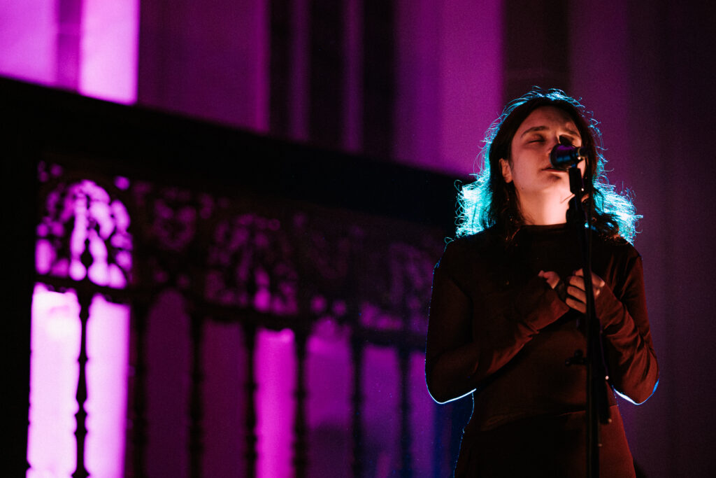 A truly cinematic experience unfolded with Julianna Barwick. Her choral soundscapes and luminous voice made the cathedral glow, holding audience in awe.