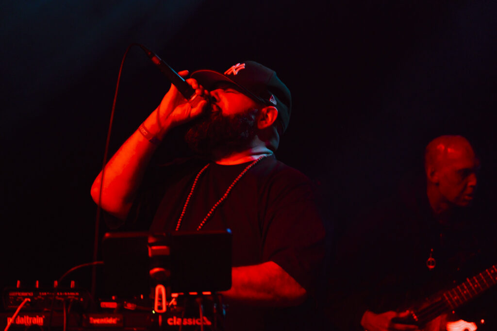 When an extraordinary trio collides with the avant-rap vanguard, something great unfolds. Mopcut—featuring experimental vocalist and electronic alchemist Audrey Chen, master percussionist Lukas Koenig, and guitar maverick Julien Desprez—was elevated even further when MC dälek stepped onto the stage. Performing their new album RYOK, Mopcut twisted grooves and rock riffs into a raw hip-hop track, with MC dälek joining as a guest.